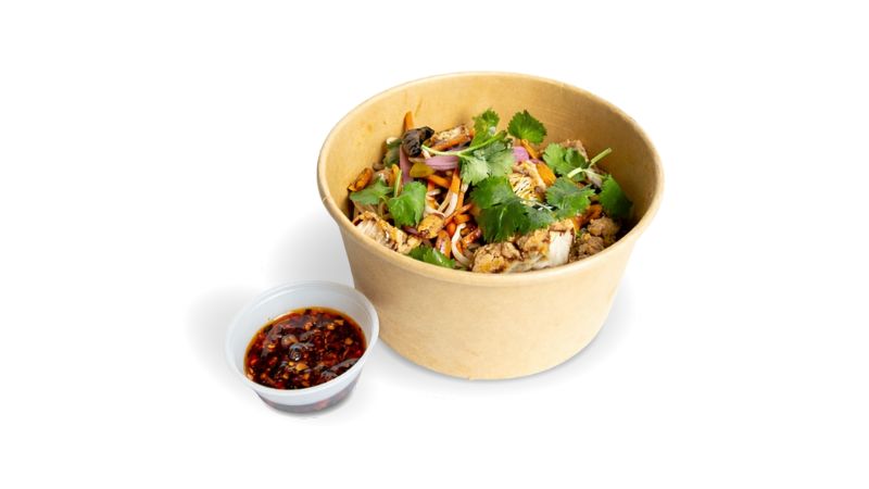 Kale, ripe mango, crispy shallots, puffed rice crackers, and ginger dressing with your choice of chopped tender, rotisserie chicken or tofu.